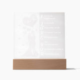 Combine modern technology and a heartfelt message with our Square Acrylic Plaque! This design is printed on crystal-clear premium acrylic and easily becomes the centerpiece of any room. And the contemporary design wouldn't be complete without its sleek wooden base, elevating the display that will instantly become a conversation starter. Create a memorable presentation when you upgrade to the LED wooden base! This is the ideal present for your beloved partner, family members, or dear friends on special occasions like anniversaries, birthdays, or any occasion where you want to express your love and appreciation in an unforgettable way. Let your loved ones know how much they mean to you by purchasing today!
