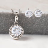 Surprise your loved one with a stunning gift that will make her heart swell! Our dazzling Eternal Hope Necklace and Cubic Zirconia Earring Set is an eye catching pair that can be worn together or separately, adding sparkle and elegance to any occasion! Don't miss out on this spectacular offering!