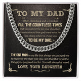 Celebrate the love and bond between a father and daughter with this stunning Cuban necklace, the perfect Father's Day gift. The necklace comes with a heartfelt message card that reads, "TO MY DAD When I look back and remember ALL THE COUNTLESS TIMES that you carried me on your shoulders, I'm convinced that god knew what he was doing when he chose you *TO BE MY DAD.β© THE ONE MAN in my life that always encouraged me to reach for the stars was you. I am thankful for all the things you prepared me for. You will always be loved. LOVE, YOUR DAUGHTER"