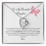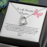 The dazzling Forever Love Necklace is sure to make her heart melt! This necklace features a stunning 6.5mm CZ crystal surrounded by a polished heart pendant embellished with smaller crystals to add extra sparkle and shine. Beautifully crafted with either a white gold or yellow gold finish, be sure to give her a classic gift she can enjoy everyday.
