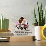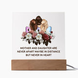 This acrylic plaque is a beautiful way to celebrate the unbreakable bond between a mother and daughter. This particular plaque is inscribed with the heartwarming message "Mother and Daughter are never apart, maybe in distance but never in heart." The sentiment is a reminder that no matter how far apart they may be physically, the love and connection between a mother and daughter remains strong and unbreakable.