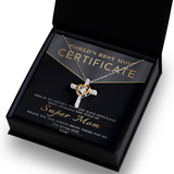 It’s then triple-plated with rhodium, a luxurious precious metal that’s over 8x more valuable than gold and 700x more valuable than silver because it’s significantly more rare and vibrant. Rhodium is also a stronger metal. Making it resistant to scratches, tarnishing, and corrosion to maintain its gorgeous luster.A stunning AAAA Cubic Zirconia centerpiece and smaller detail stones complete the design as they’re skillfully set in the cross pendant. These stones are highly regarded for their brilliant clarity and eye-catching sparkle.