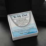 The necklace is designed to be elegant and timeless, with a classic Cuban link chain that will look great with any outfit. The pendant is made from high-quality materials, ensuring that it will last for years to come. This gift is perfect for showing your dad how much you appreciate him and all that he has done for you over the years. It's a wonderful way to express your love and gratitude and let your dad know that he is cherished and loved.