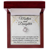 This love knot necklace is a symbol of the unbreakable bond that exists between a mother and daughter. It represents the infinite love and support that a mother provides to her child, no matter what. The love knot design is a reminder that their love and connection is strong, unwavering, and enduring.