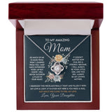 As my mother, you have been my rock, my confidante, and my biggest supporter. Whenever I wear this necklace, I hope you will hold it close to your heart and feel the warmth and love that I have for you. Whether we're together or apart, our bond remains strong.
