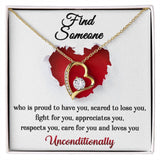 "Discover the perfect symbol of eternal love with our Forever Love Necklace, a thoughtful Valentine's gift with a message card specifically designed for that special love of your life. Crafted with exquisite detail, this unique and timeless piece beautifully captures the essence of your enduring love. Surprise your special someone with a gift that expresses your forever commitment. Order now for a cherished keepsake that speaks volumes in the language of love."